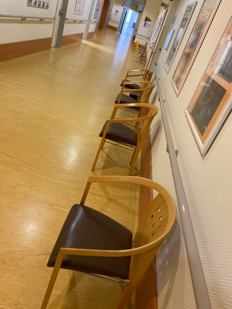 Das bedeutet also, dass du, wenn du „ich“ bist, immer gut vorbereitet sein musst, um nicht der Empfänger von unnötigen und langwierigen Kranken- und Lebensberichten zu werden, denn du kannst es nicht vermeiden, mit anderen Mitinsassen am Gang auf den Therapiebeginn zu warten.