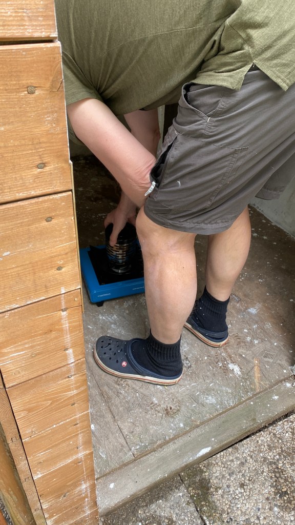 Mit Mundschutz und Schutzbrille bewaffnet, strich ich jeden Millimeter, verfugte Rillen mit Silikon und betrachtete nach einigen Stunden stolz mein „Werk“. Da jedoch durch einen Verbau, den ich entfernt hatte, eine sehr feuchte „Ecke“ aufgedeckt wurde, stand MrRight plötzlich mit unserer kleinen tragbaren Gas-Heizung auf der „Hühner-Matte“ 💛 Ich weiß ja, warum ich ihn liebe 💛