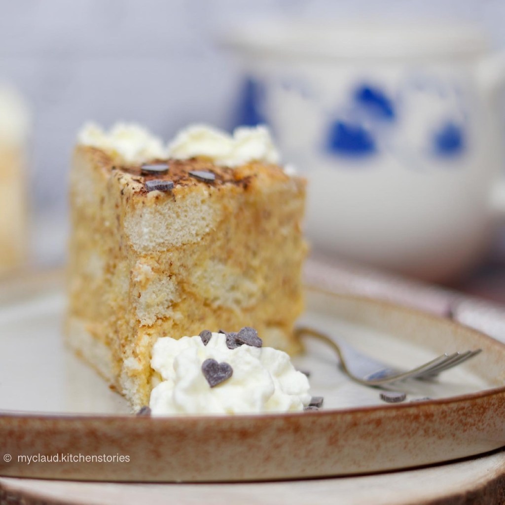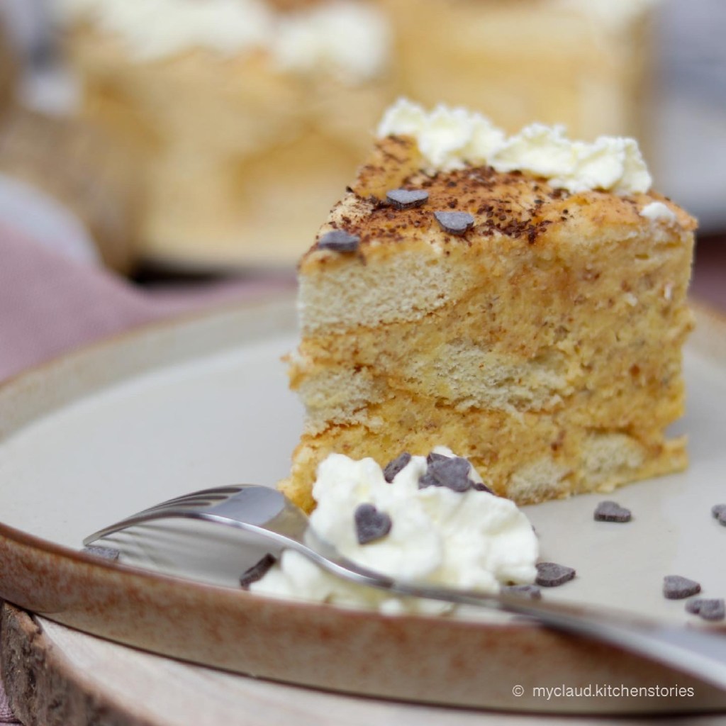 Ich empfehle die Torte über Nacht kühl ziehen zu lassen (mindestens schon 12 Stunden, damit alle Biskotten den Geschmack der Creme angenommen haben)