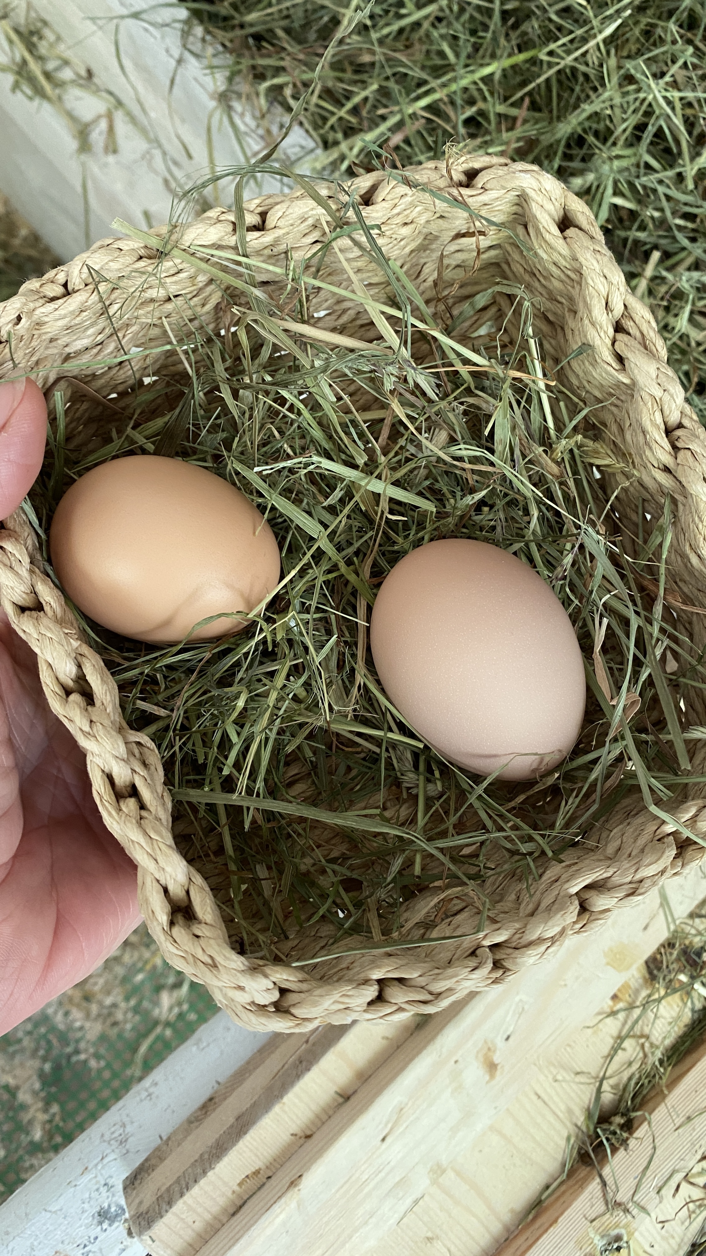 TAG 32 der Hühnerhaltung, aktuell täglich 2 Eier von 5 Hühnern, gesamt: 50 Eier
