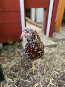Abgesehen von dem „Schlafproblem“ hatte ich persönlich noch ein ganz anderes, nämlich die Anzahl an Hühnern. Ich hatte einfach ein Problem mit der GERADEN Zahl – bitte fragt mich nicht warum. Außerdem hatte ich bei dem Bauern noch ein wunderschönes Blumenhuhn gesehen, das mir einfach nicht mehr aus dem Kopf ging. Als ich MrRight vorsichtig davon erzählte, meinte er bloß nur mehr „Wenn es dich glücklich macht, dann holen wir es noch dazu“. Und so kam es, dass wir vier Tage nachdem Jutta und Daisy im Hühnerhaus eingezogen waren, die kleine wunderschöne Flora zu unserer Hühnerschar gehörte.