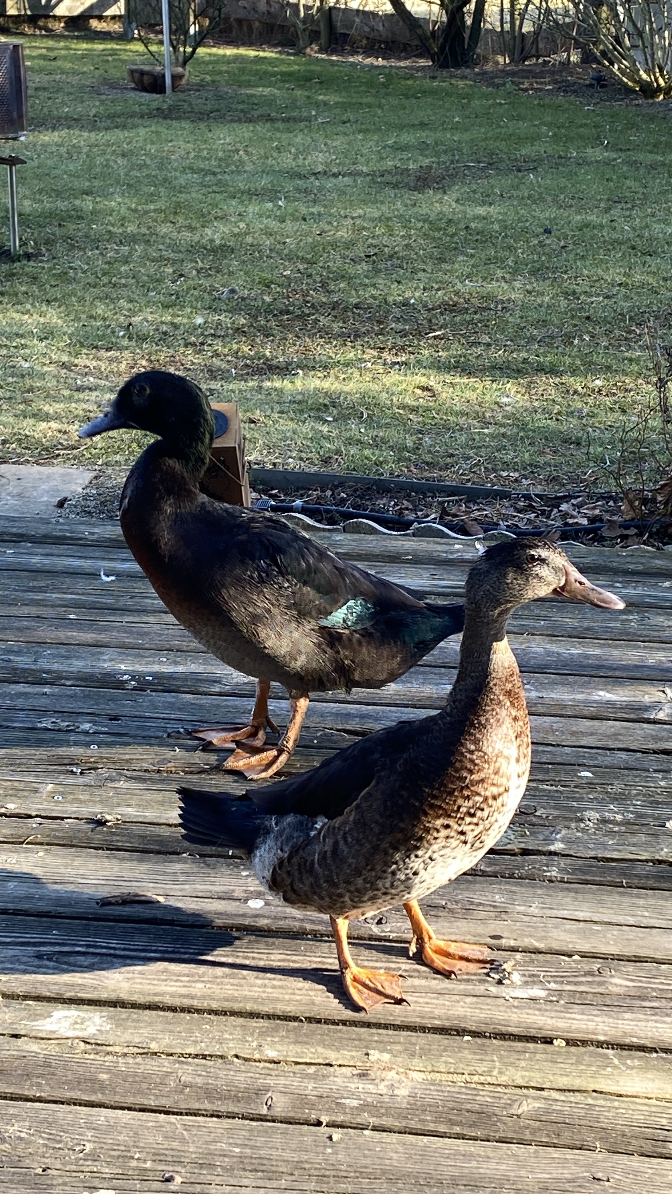 Wie durch Zufall fand ich beide Enten zwei Tage später bei einem anderen Nachbarhof wieder🤣. Wir fingen sie ein, aber in derselben Nacht verschwanden sie abermals. Und die lieben Tierchen wiederholten dieses Spiel bestimmt noch dreimal, woraufhin ich die Empfehlung aus dem Internet, dass sich Enten nicht mit Hühnern verstehen, verwarf, und sie im Hühnergehege unterbrachte. (aber nicht, ohne vorher das Gehege davor noch ausbruchsicherer zu machen) .