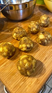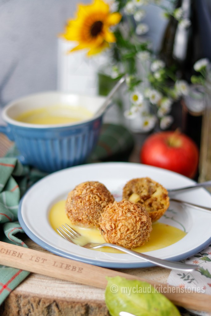 Knödel gibt es bei uns in so zahlreichen Variationen, süß und herzhaft, mit und ohne Fülle, dass ich sie niemals alle aufzählen könnte, aber diesen Gebackenen Apfelknödel hab ich – außer bei meiner Oma – noch nie irgendwo gesehen.