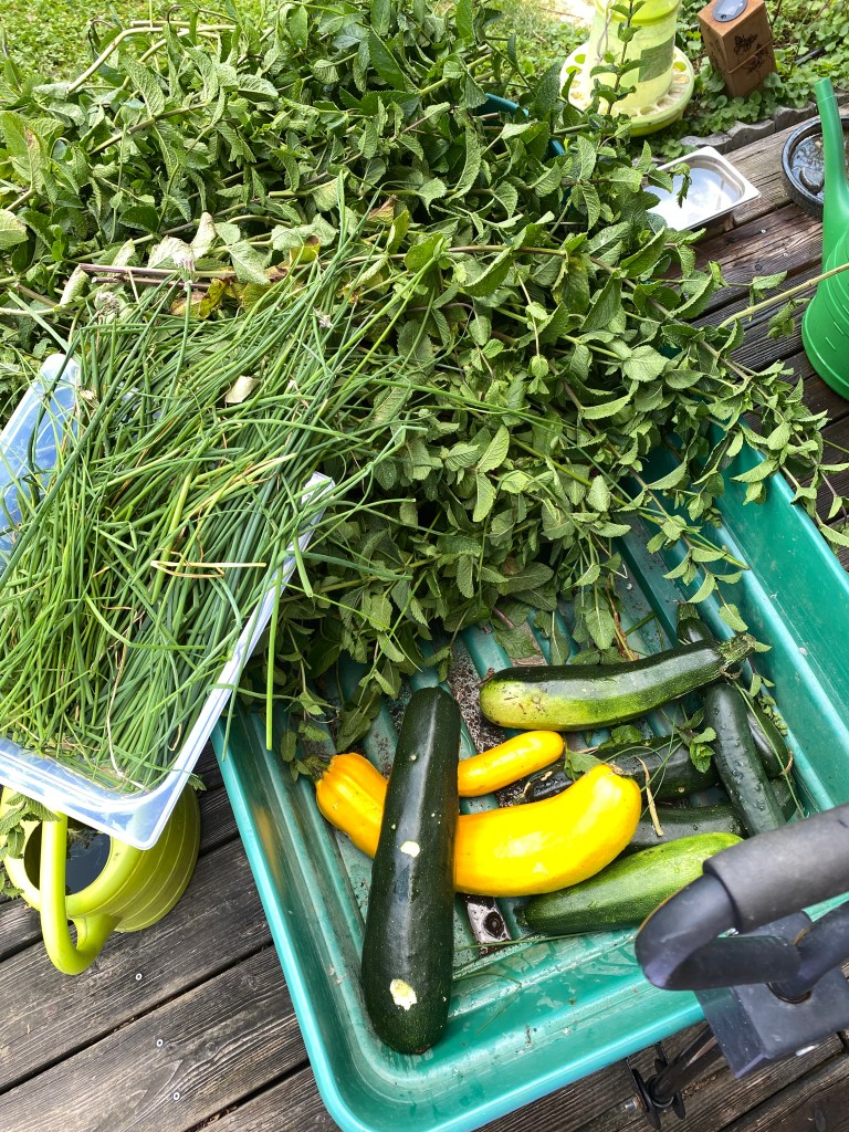 Was letztes Jahr dem Hagel zum Opfer fiel, hat heuer jedem Wetter standgehalten – meine Zucchini. Und wenn man noch dazu bedenkt, dass ich aus Angst vor „Hagel“ heuer ein Pflanze mehr gesetzt habe und wir ja eigentlich nur zu zweit sind, dann weiß man, dass ich heuer wirklich, wirklich viel zu viele Zucchini ernten durfte. (btw: es werden kommendes Jahr KEINE Zucchini angebaut 😉)