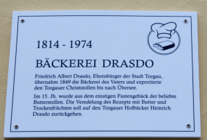 Für die Entwicklung vom sehr mageren Fastengebäck zum reichhaltigen Festgebäck zeichnet sich im 15. Jahrhundert Hofbäcker Drasdo auf Schloss Hartenfels in Torgau verantwortlich. Auf Bitten seines Fürsten kreierte er den ersten Stollen der heutigen Art, als schweren Hefeteig mit Butter, Rosinen, sowie Zitronat und Orangeat, bestrichen mit ausgelassener Butter und gewälzt in Zucker, der ebenso wie die eingesetzten Gewürze sündhaft teuer war. (Drei Kilogramm Zucker kosteten damals so viel wie ein ganzes Rind). Wegen der reichhaltigen Rezeptur und der Namensähnlichkeit gilt der Drasdoer Stollen als historischer Vorläufer des Dresdner Stollens. Das üppige Festgebäck des Fürsten war allerdings ein Verstoß gegen die christlichen Fastenregeln und durfte daher erst nach der Fastenzeit zum heiligen Fest gebacken werden.