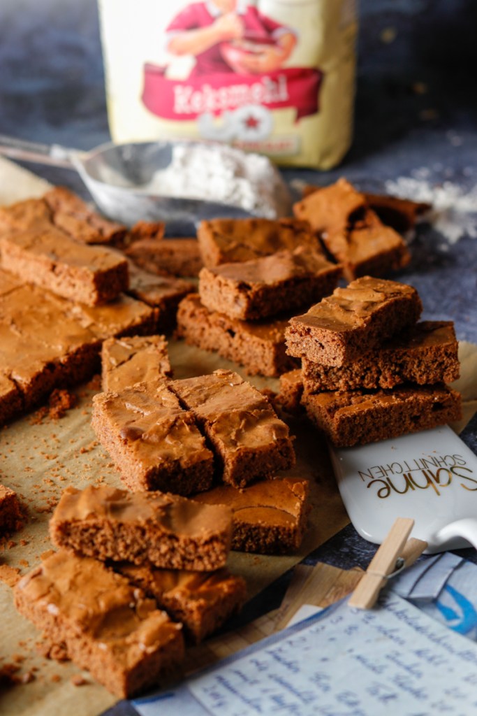 Oma wusste, dass ich diese Schnitten liebe, und hat sie oft extra nur für mich gebacken. Es handelt sich bei diesen Schnitten übrigens nicht um fluffig weichen Kuchen, den man mit Creme oder Sahne isst, sondern es ist eine Mischung aus Keks und Kuchen, Cookie und Brownie, aber super lecker schokoladig -einfach zum Vor-sich-hin-knabbern. Auch für Backlegastheniker 😉