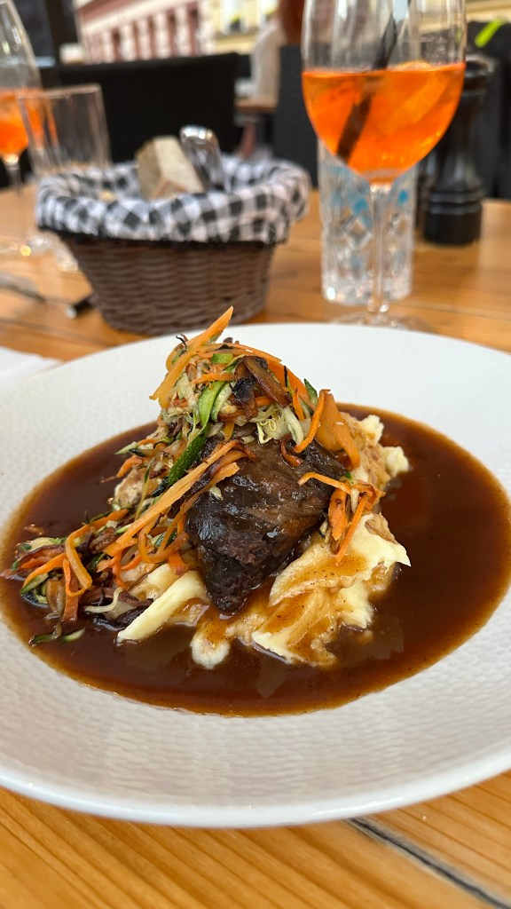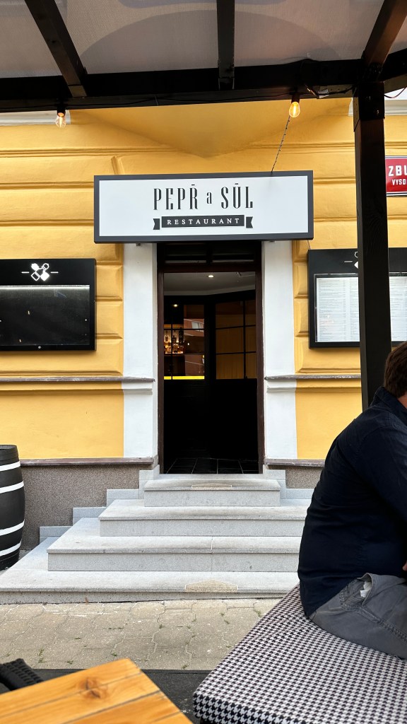 Schon öfter hat uns Trip-Advisor einen tollen Geheimtipp als Lokal geliefert und tatsächlich wurden wir auch in Prag nicht enttäuscht. Das Pepr a sul ist UNSER Prag-Highlight. Mit der Metro ist man schnell im 9.Bezirk, danach steht man nach ein paar Schritten vor dem unscheinbaren Lokal. Aber das war es dann auch schon mit „unscheinbar“ 😉 Die Bedienung – äußerst zuvorkommend – blieb immer länger an unserem Tisch als es „Pflicht“ gewesen wäre, entweder um eine Speise zu erklären oder ehrlich danach zu fragen, wie es uns geschmeckt hat. Wir bekamen den letzten freien Tisch im Freien, haben dreigängig richtig lecker gegessen und die Nachspeise der „Altböhmischen Zimtpfannkuchen mit heißen Heidelbeeren und Rahm“ steht bereits auf meiner „Nachkoch-Liste“. Leider war es für ein Foto schon zu finster. Die angebotenen Gerichte würden wir zwar nicht als „rein tschechisch“ beurteilen, aber die Auswahl hat uns auf jeden Fall zufrieden gestellt. Dieses Lokal empfehle ich wirklich von Herzen! Fernab vom Touristenstrom kommen hier Feinschmecker auf ihre Kosten.