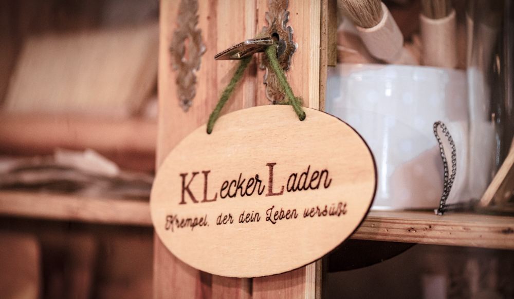 MrRight hat mir schon bald eine nettes Holzschild für die Kommode in der „echten“ KLeckerei geschnitzt, die dort als „Ladentheke“ dient.